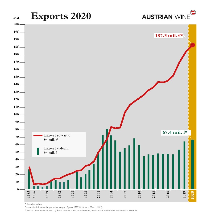 Isn’t it just great to read Good News! The Austrian Wine Marketing Board has just released export numbers for 2020 that make fascinating reading.